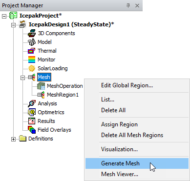 - In the Project Manager, right-click Mesh and select Generate Mesh.