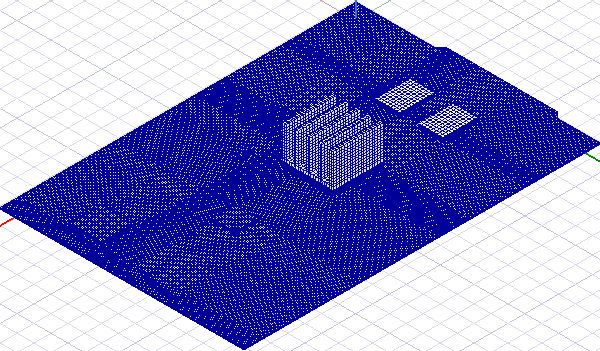 The following images show mesh for a PCB and components with part by part meshing enabled.
