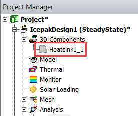 In Icepak, you can suppress a selected geometry's or component's design data during a simulation. In design geometry's properties, the Suppress For Physics setting can be set to True or False. Select True to suppress the geometry or False to activate it for inclusion in the simulation. When an object is suppressed for a simulation, design data assigned to it are not factored into the analysis, including the following:
