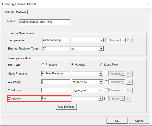 - After assigning boundary conditions, assign the project variable to the opening boundary condition serving as the inlet.