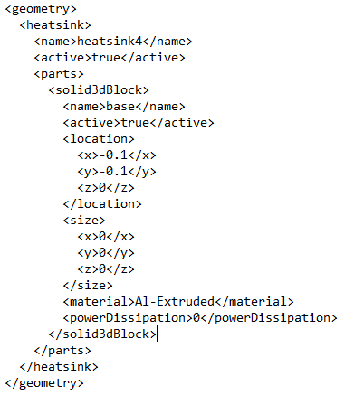 The following is the EC XML format for a heat sink component.