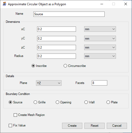 Approximate Circular Object as a Polygon enables you to create geometry, assign a boundary condition, and create a mesh region for a circular polygonal object.