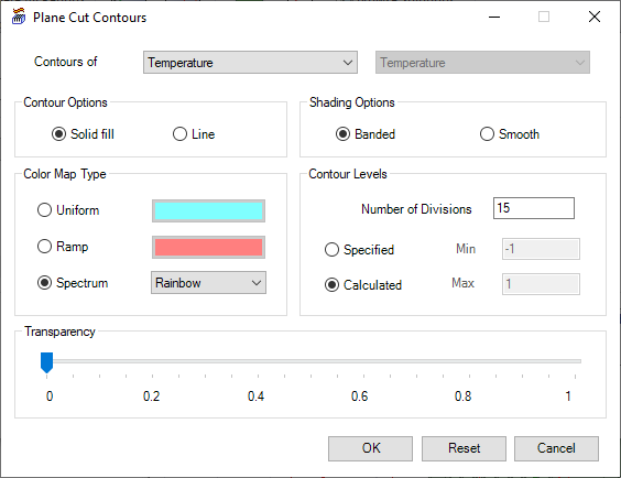 | Transparency | Under Transparency, use the slider bar to adjust the transparent or opaque the cut plane contours appear. |