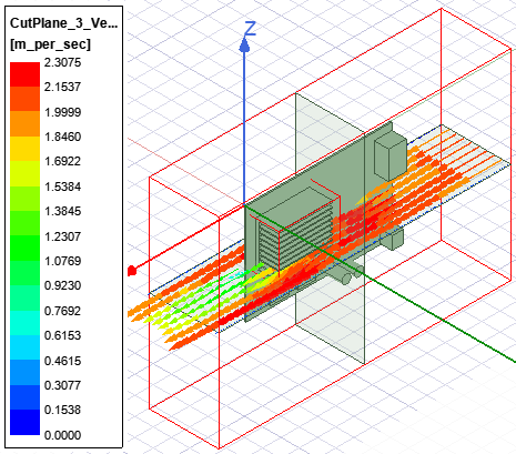 Cut Plane allows you to create a plot thermal or flow data on contours or vectors on a plane. Cut planes allow you to examine areas between objects in the model (in which the fluid alone exists), as well as regions inside objects that contain a fluid or solid material.