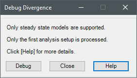 Debug Divergence creates monitor points and cut planes at the location of maximum speed and temperature. It automatically detects which variables are available and plots accordingly.
