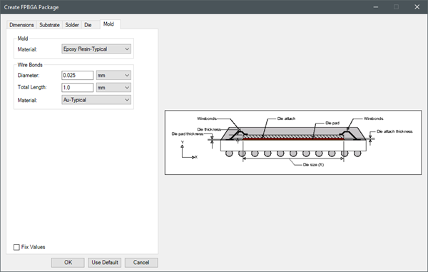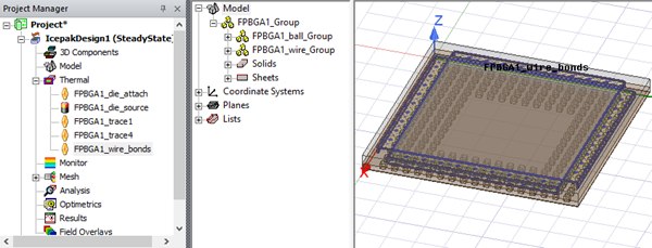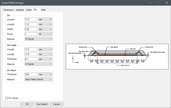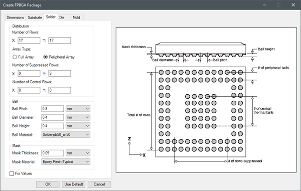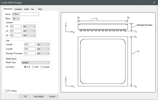 FPBGA enables you to create geometry and boundary conditions to represent a fine pitch ball grid array package.
