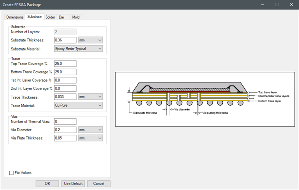 Under Substrate, specify the Number of Layers, Substrate Thickness, and Substrate Material. |
