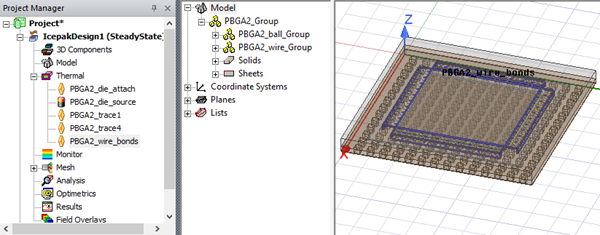 PBGA enables you to create geometry and boundary conditions to represent an plastic ball grid array package.