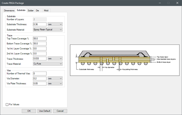Under Substrate, specify the Number of Layers, Substrate Thickness, and Substrate Material. |