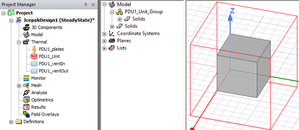 PDU enables you to create a fluid block, partitions, and vent geometry and boundary conditions to represent a power distribution unit.