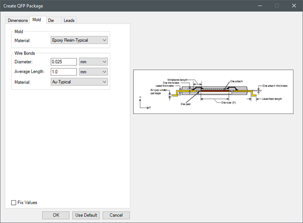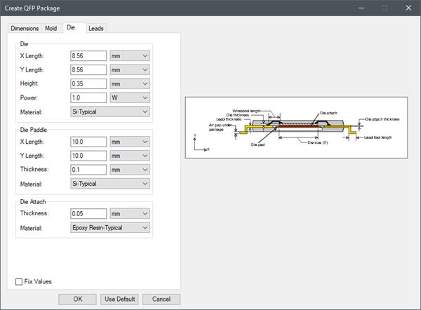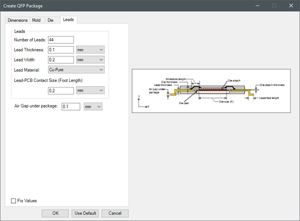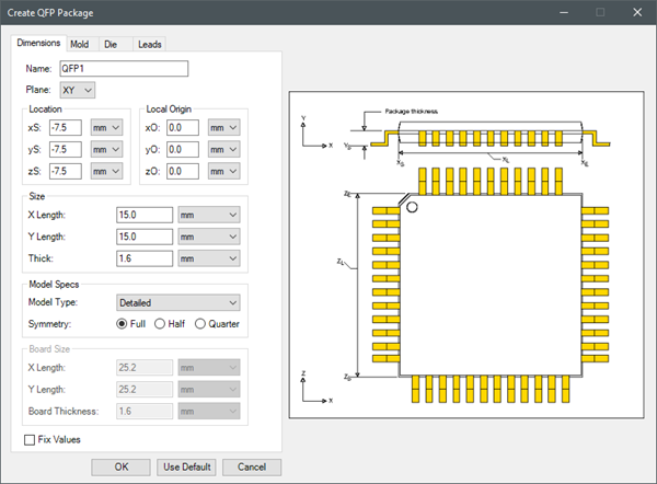 QFP enables you to create geometry and boundary conditions to represent a quad flat package.