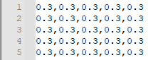 The following images are examples of a comma-separated value (.csv) file as displayed in a spreadsheet application and a plain text editor.