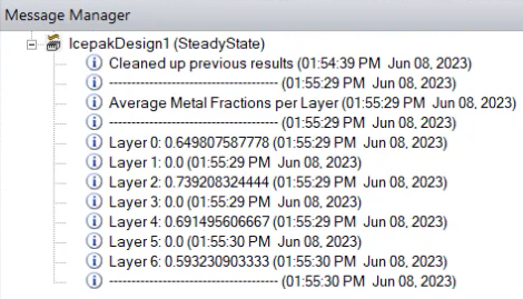 The average metal fractions are displayed in a dialog box and the message manager.