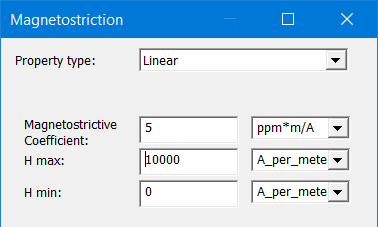 For Linear, enter values for Magnetostrictive Coefficient, H max, and H min.