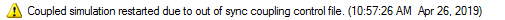 The controller automatically detects “out of sequence" simulations and restarts the coupled analysis. The following message is posted in the Message Manager window when a coupled simulation needs to be restarted: