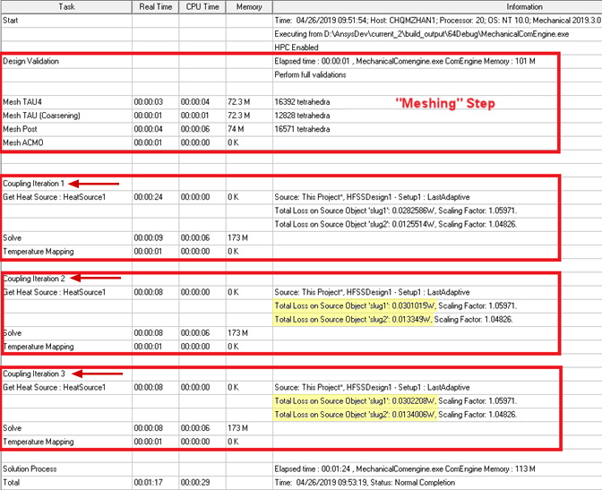 12. When all coupled iterations have been completed, right-click the mechanical solution setup, under Analysis in the Project Manager, and choose Profile.