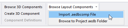The layout component can be imported from an aedbcomp file, Project aedb folder, or EDB definition to an HFSS 3D design with terminal solution type.