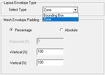 For Mesh Fusion, the Mesh Envelope can be specified as a percentage or as an absolute. If necessary, conversion from relative to absolute is done for Layout Component in HFSS when doing mesh assembly. For multizone stack up envelope padding, the conversion is based on the largest layer thickness across all zones.