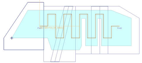 The shape of the envelope respects the dielectric extent chosen for a layout component. To better demonstrate the envelopes, the following layout component has conformal dielectric extent defined.