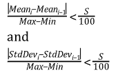 - Populations 3 – 11: Starting from the third population, the minimum and maximum output values are used in the next steps to scale the values (on a scale of 0 to 100). The mean variations and standard deviation variations are checked. If both of these are smaller than the value for the Convergence Stability Percentage property, the algorithm is converged.