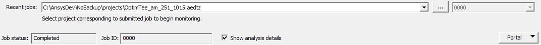 The Portal drop-down button provides a link to the Ansys Portal, where job details and additional monitoring information are available. For more information, see the Ansys Portal Guide.