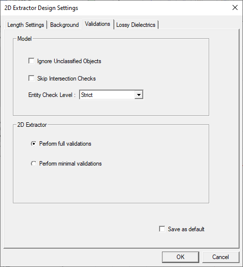 Design Settings for 2D Extractor