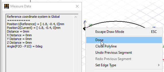 - If the endpoint is the last point of the polyline object, double-click the point to complete the polyline or click Done on the shortcut menu.