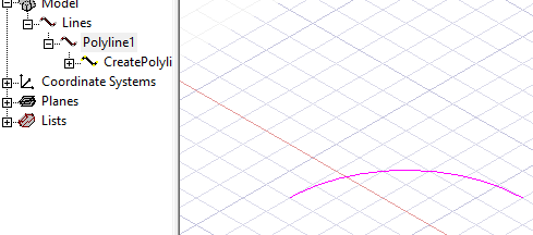 If the Modeler option for editing properties of new primitives is checked, the Properties dialog box appears, enabling you to modify the object's attributes. The new polyline appears in the modeler window and in the History tree.