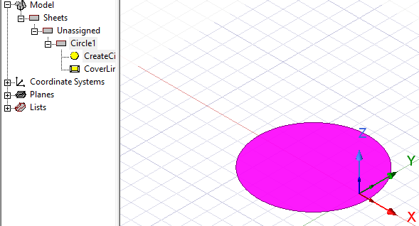Draw a circle by selecting a center point and a radius. Circles are drawn as true surfaces in the modeler. Before you draw a circle, you can specify the coordinate system, and you can set the drawing plane as Z, Y, or Z, or you can edit the plane in the properties.