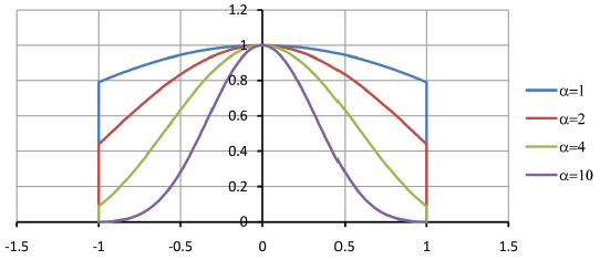 Figure 4. The Kaiser window for a width of w=2 and varying values