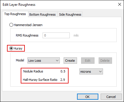 Surface roughness can increase conductor power losses by more than two times the loss associated with smooth conductors. In SIwave, a modification of the standard real-valued Huray surface roughness model is implemented to accurately account for these losses in both the frequency and time domains.