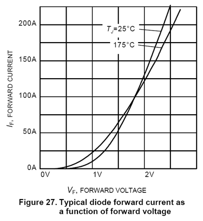 In the Freewheeling Diode Characteristics dialog box, each tab corresponds to one freewheeling diode characteristic curve, that is, If = f(Vf) at a specific junction temperature Tj. These characteristics are obtained from the forward diode characteristic supplied by the device manufacturer as illustrated below.