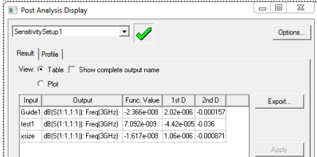 - After setup, analyze your Sensitivity Setup under Optimetrics.