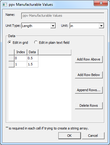 Select the check box in the Use Manufacturable Values column to enable the button in the Levels column. Click the button to edit the values. An edit dialog box for the variable appears.