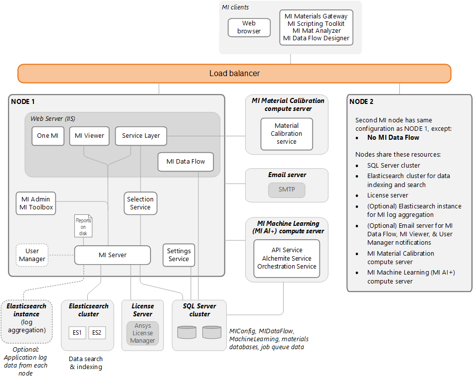 As Granta MI does not include a load balancing mechanism, you should also install a separate load balancer that suits the needs of your organization. See Load balancer requirements for recommended configuration.