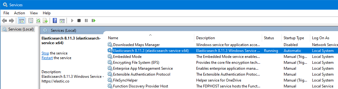 By default, Elasticsearch runs on the command line. You can install it as a Windows service that runs in the background and starts automatically at boot time without user interaction.