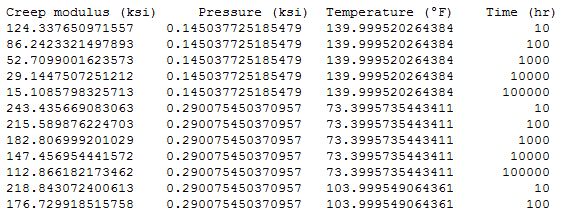 Example:Creep modulus-time: