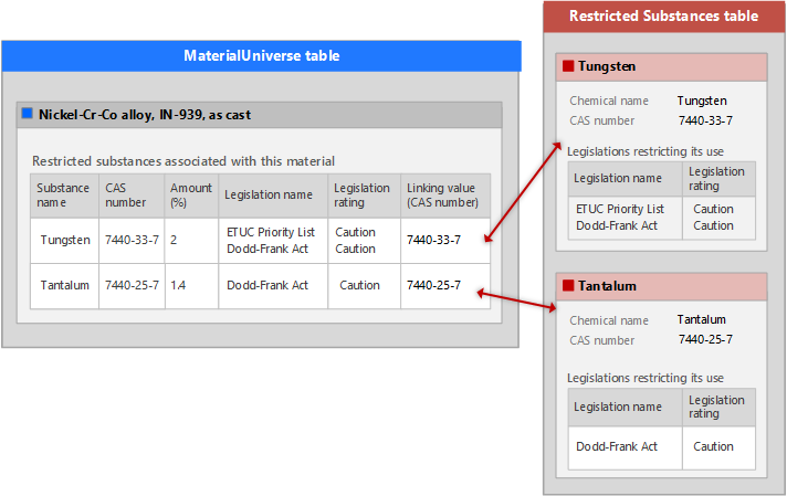 Tabular Attributes are often used in Granta MI to provide a summary of information related to the record. They can include data that is pulled from other records in the same or a different Table, or even in a different database. For example: