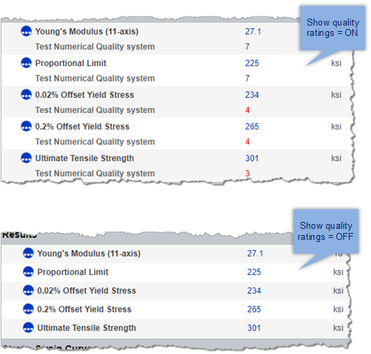 - Clear Show quality ratings to hide quality ratings on datasheets and reports; quality ratings will still be displayed on individual data views.