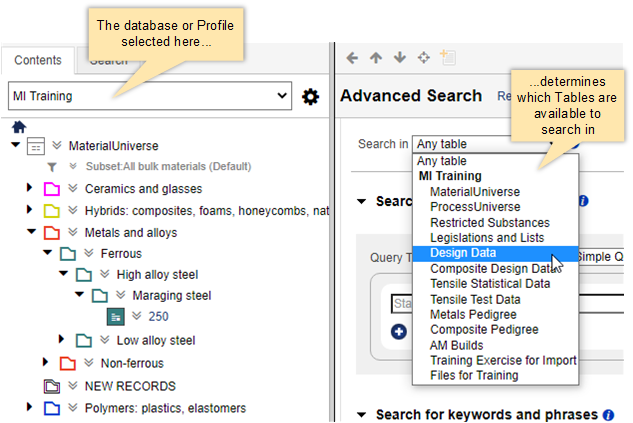 Choose a Table from the Search in list to limit the scope of the search to records in that Table.
