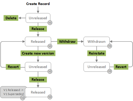 When version control is enabled, records may be moved from one state to another as follows: