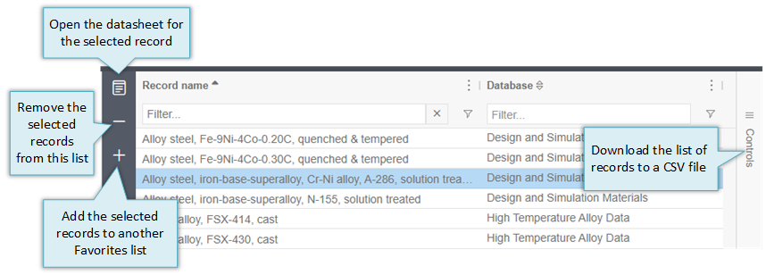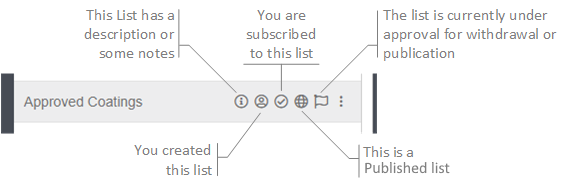 The panel on the left of the MI Favorites window shows all of the Favorites Lists available to you. Here you can see personal lists that you have created, and published lists that you can subscribe to.