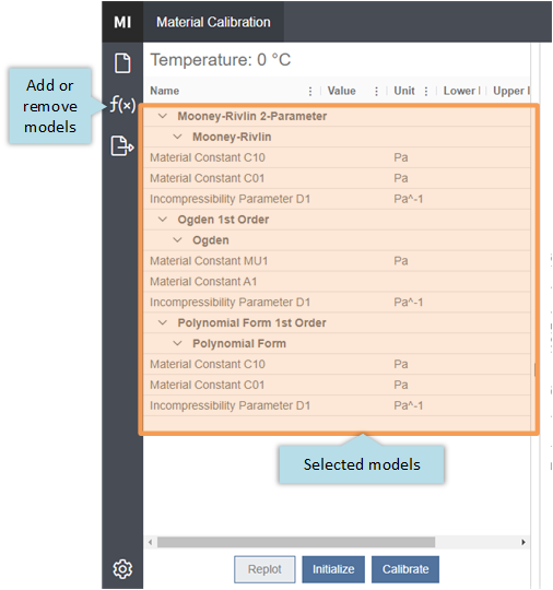 When you have added your test data, you can select one or more models to fit to it. You will only be able to choose models that are compatible with your test data.