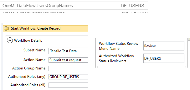 OneMI.DataFlowUsersGroupNames setting, allowing workflow designers to