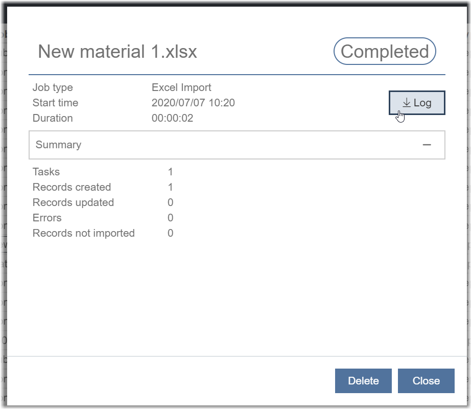 The status of each import job, and a summary of the actions that have been performed can be accessed by double-clicking the import job.