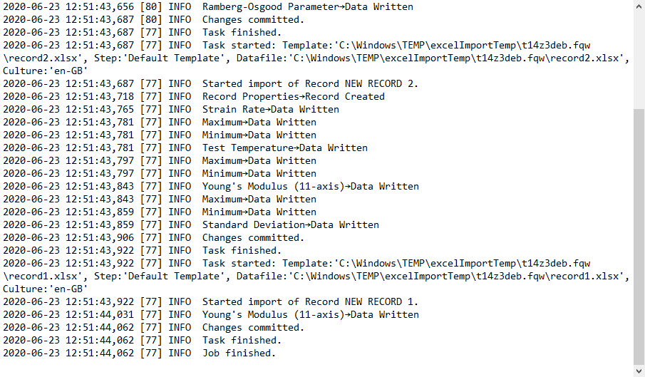 The number of 'tasks' reported here relates to individual import steps logged by the importer. Details of each task can be viewed in the job log file.