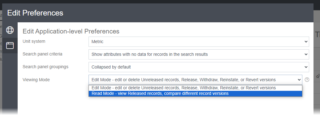 - In Edit Mode, users with the necessary permissions can see and edit Unreleased versions, and perform version control operations such as releasing, reverting, and withdrawing records. See Required roles for viewing and editing operations.