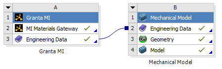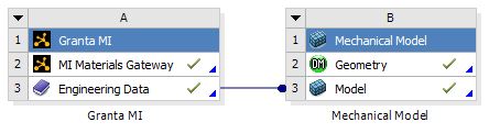 When the Engineering Data component is shared with a downstream system in Ansys Workbench, its materials become available for assignment - for example, to parts in a geometry.