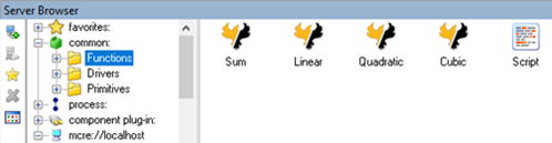 The Common Components are a set of components built directly into ModelCenter. These components can be used without having to access an external MCRE server. They are accessible from the common folder of the Server Browser.