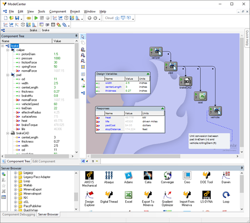ModelCenter is built on several fundamental concepts including ModelCenter Remote Execution, Variables, Components, and Geometry. This section explains each of these concepts and how they are used in ModelCenter.
